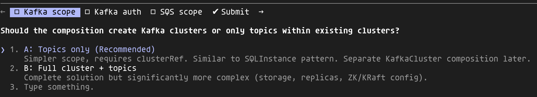 1/spec composition "Add queuing composition supporting Strimzi (Kafka) or SQS"