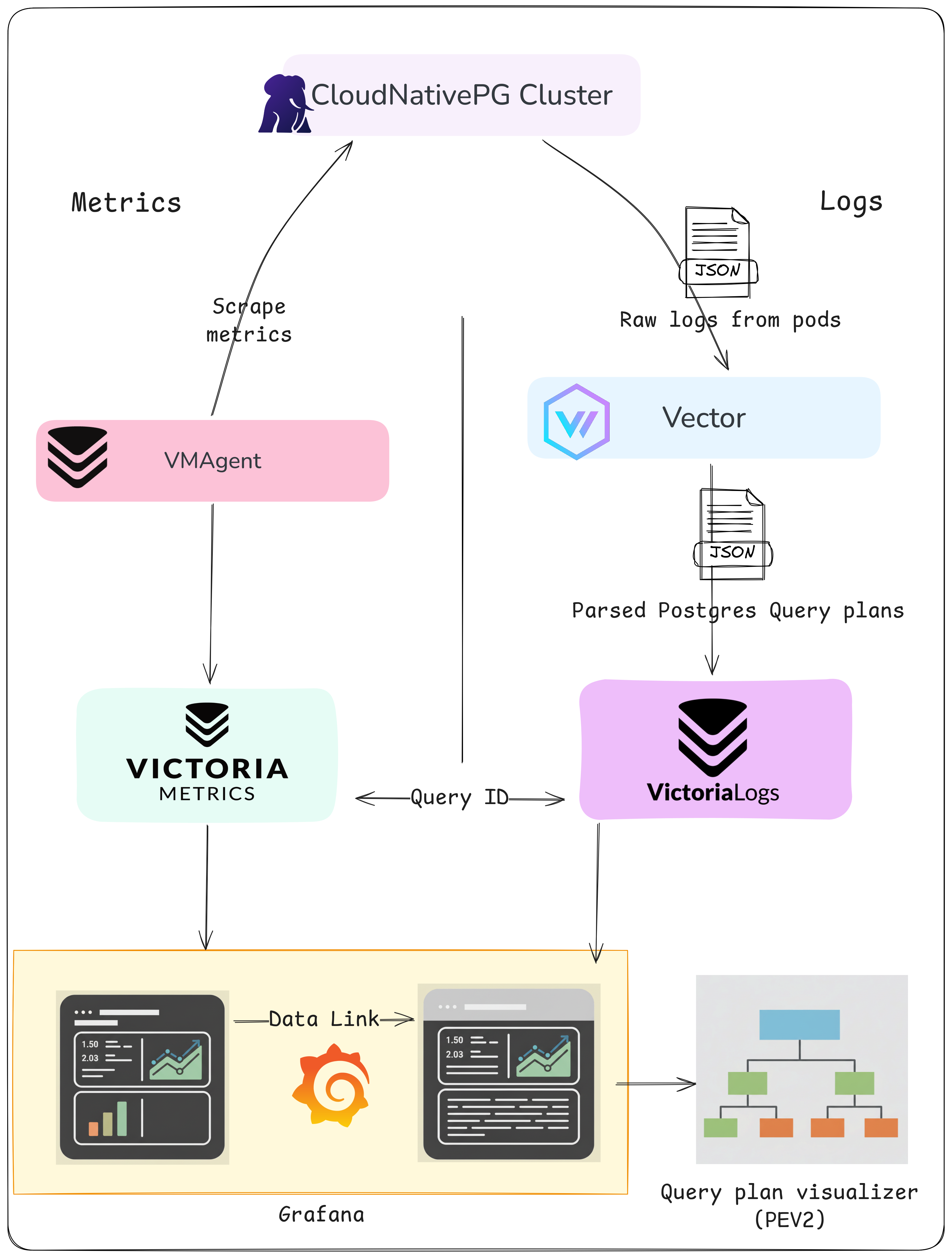 In this article, we'll explore how to enhance CloudNativePG's already robust monitoring with simple, effective, and easy-to-use query performance analysis capabilities—leveraging the power of tools at our disposal: Vector, VictoriaMetrics, and VictoriaLogs.